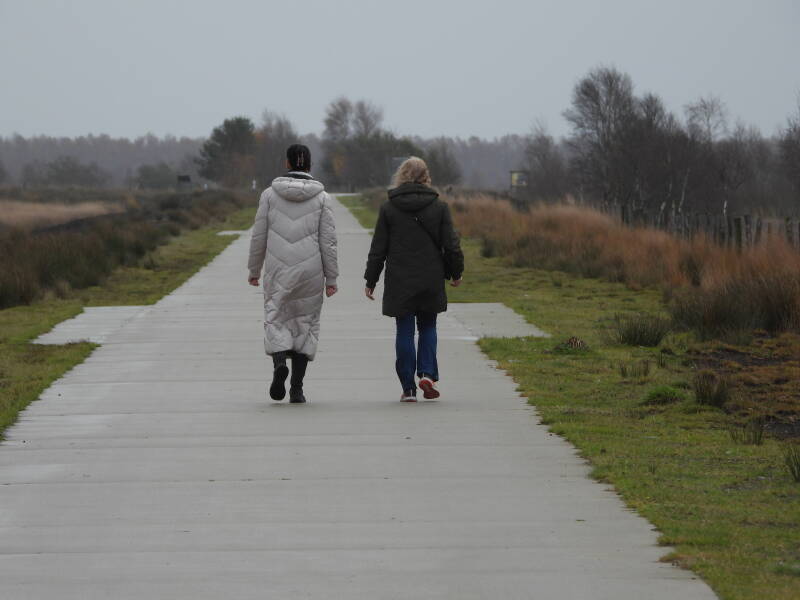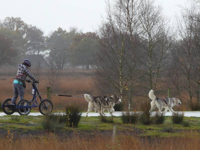 Na de halve marathon van gisteren vandaag opnieuw de route van de 7 kilometer meegepakt. Het Bargerveen was stil en verlaten. Onderstaand gedicht van Peter Veen (november '17) past hier prima bij. Behalve de fietsers kwamen wij wel wat meer tegen. Er werd gewandeld, hardgelopen, gefietst en zelfs met de sledehonden gelopen. Ieder genoot op zijn /haar eigen manier.